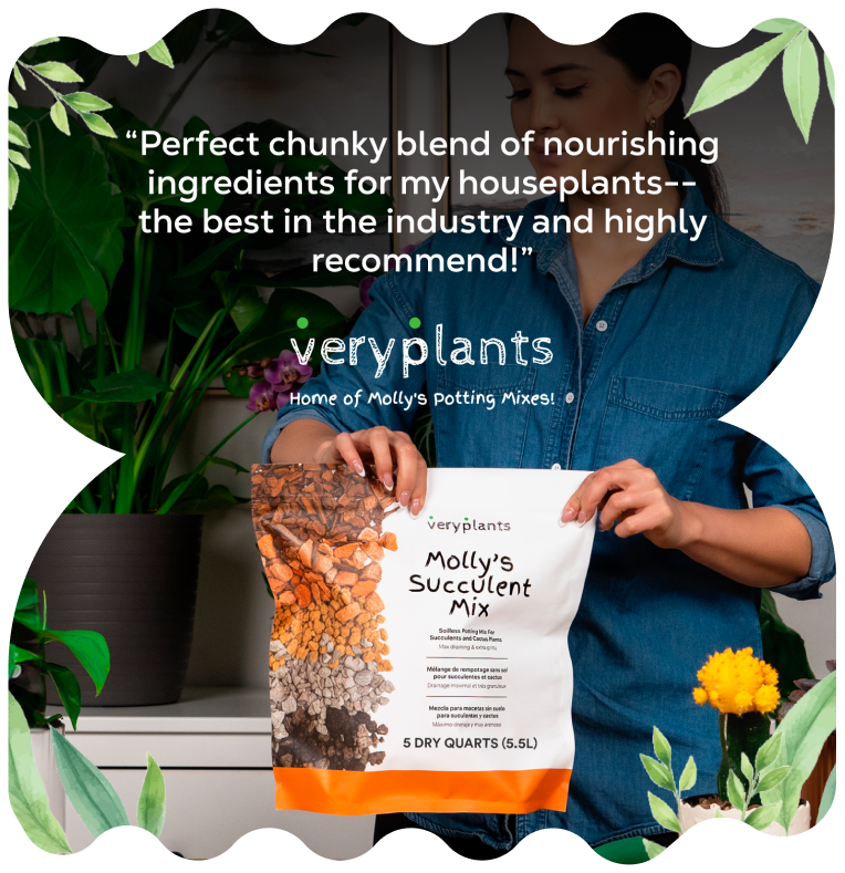 Molly's soil-free potting mixes are specifically crafted for potted plants, preventing compaction after watering and greatly reducing the risk of overwatering and root rot, the leading causes of houseplant issues. They are guaranteed to be free of pests, commercial fertilizers, and harsh chemicals, and are not attractive to fungus gnats, which prefer to lay their eggs in soil. Molly's Potting Mixes are ideal for nearly any indoor plant, including tropical/leafy plants, succulents and cacti, and orchids. If you're unsure whether our mixes are suitable for a specific plant, just reach out to us, and we'll quickly provide a recommendation.